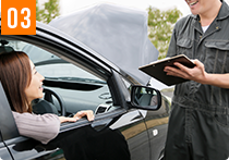 最初にお車の現在地と車種をお知らせください。サービスの手順をご案内させていただきます。
